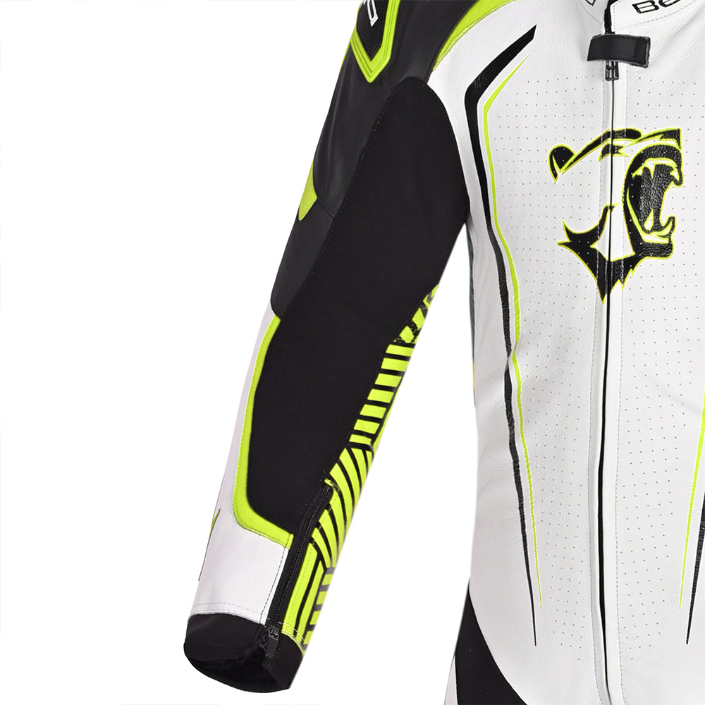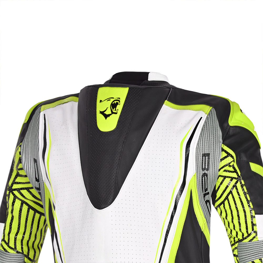 Schutz: Fortschrittliche Panzerungsplatzierung: Ausgestattet mit CE-geprüften Knie-, Ellbogen- und Schulterprotektoren sowie einem robusten Rückenprotektor für vollständigen Schutz. Abnehmbare Knieschleifer: Passen Sie Ihren Schutz mit leicht abnehmbaren Schleifern an Ihre Fahrbedürfnisse an. Einhaltung gesetzlicher Vorschriften: Vollständig konform mit EN: 17092-2:2020 und CE-Klasse AAA-zertifiziert für maximale Sicherheitsstandards Material: Hochwertige Ledermischung: Hergestellt aus hochwertigem Rindsleder, gemischt mit Känguruleder, bietet es außergewöhnliche Haltbarkeit und Flexibilität. Zuverlässiger Verschluss: Enthält YKK-Reißverschlüsse, die für ihre unübertroffene Zuverlässigkeit und reibungslose Funktion bekannt sind. Verbessertes Komfortfutter: Verfügt über ein Innenfutter aus Netzmaterial, das für optimalen Komfort und Luftzirkulation sorgt. Komfort: Überlegene Belüftung: Atmungsaktives Netzfutter sorgt dafür, dass Sie kühl und trocken bleiben, unabhängig von der Entfernung oder dem Wetter. Taschen: Mit zwei Innentaschen, eine mit Reißverschluss und eine mit Klettverschluss, für sichere und leicht zugängliche Aufbewahrung. Verstellbare Passform am Hals: Verfügt über einen Klettverschluss für eine bequeme Passform am Hals, die an Ort und Stelle bleibt. Gewicht: Gemessenes Gewicht: Das Gesamtgewicht des Anzugs beträgt 4,45 kg, wobei die Schutzkomponenten 500 g wiegen, was insgesamt 5,95 kg für Schutz und Mobilität ergibt. VORSICHTSMASSNAHMEN: Pflegehinweise: Um die Unversehrtheit und das Aussehen des Anzugs zu erhalten, wird Handwäsche bei 30 Grad empfohlen. Bleichmittelfreie Pflege: Um die natürlichen Eigenschaften des Leders zu erhalten, verwenden Sie kein Bleichmittel. Kein Bügeln erforderlich: Vermeiden Sie das Bügeln, um die Schutzeigenschaften und die Ästhetik des Anzugs zu erhalten.