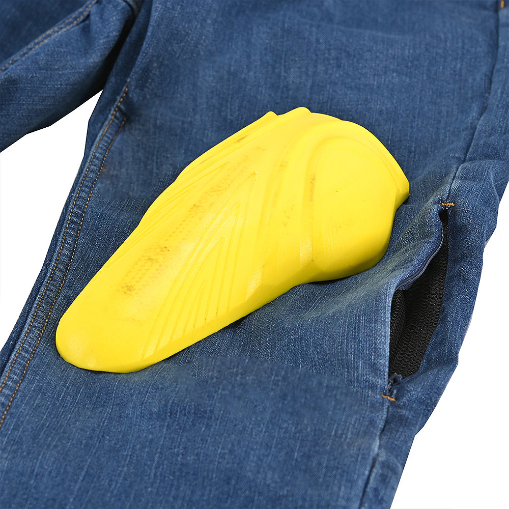 Die Hose aus strapazierfähigem Stretch-Denim (87 % Baumwolle, 11 % Polyester, 2 % Elastan) bietet optimale Bewegungsfreiheit, egal ob in Kurven oder im Stadtverkehr. Strategisch platzierte Aramidfaser-Einsätze (Kevlar® und Polyester) im Hüft- und Kniebereich sorgen für zusätzliche Abriebfestigkeit, während herausnehmbare Knie- und Hüftprotektoren nach CE-Norm individuell anpassbare Sicherheit für jede Fahrt gewährleisten.
