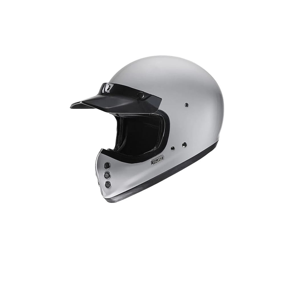 Estilo clásico con un toque moderno, el HJC V60 inaugura una nueva categoría de cascos en nuestra línea off-road para 2022. Inspirado en el icónico FG-01 de los años 80, el V60 va más allá del look vintage al incorporar características de última generación como una calota ligera de fibra de vidrio, un amplio visor solar interno IS-10, bolsillos integrados para altavoces, interior desmontable y lavable, y almohadillas de emergencia para mayor seguridad. Además, incluye una visera de pico extraíble con tres botones para completar su estilo retro.