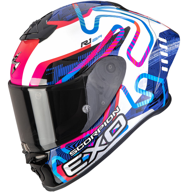 SCORPION EXO-R1 EVO II AIR CORNERING BLANCO AZUL ROSA