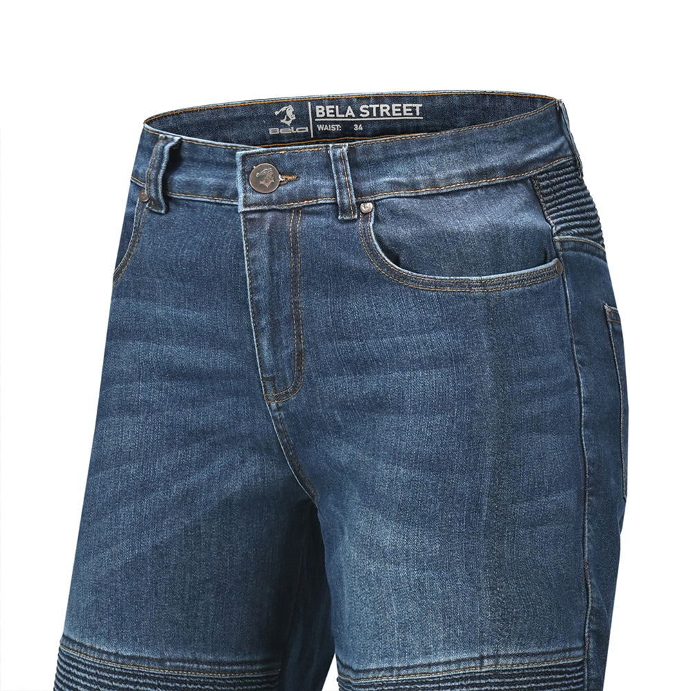 Protections: Integrated Hip and Knee Protectors: Our Pents Denim is designed with safety in mind and features robust protectors strategically placed on the hips and knees. These protectors are designed to absorb impact and provide an extra layer of safety during any physical activity, ensuring peace of mind whether you're on the go or on the road. Regulatory Compliance: Fully compliant with EN 1621-1:2012 and CE Class AA certification for maximum safety standards. Material: High-Quality Fabric Blend: The denim is made with a superior blend of 98% cotton and 2% elastane. This combination offers the perfect balance of durability and stretch, ensuring long-lasting wear and comfort. The fabric is breathable yet durable, making it ideal for everyday use and more demanding activities. Aramid Inner Lining: For added protection, the interior of the denim features an aramid lining. Aramid fibers are known for their exceptional strength and heat resistance and are often used in aerospace and military applications. This lining significantly improves the jeans' durability and protective qualities. Comfort: Flexible Accordion Panels: To maximize comfort and mobility, the Pents Denim includes accordion-style stretch panels at the hips and knees. These panels expand and contract with your movements, providing unmatched flexibility and ease of movement, whether you're bending, stretching, or sitting. Ample Pocket Space: Practicality meets style with two spacious front pockets, two back pockets, and a handy coin pocket on the right side. These pockets offer ample space for your essentials, keeping them within easy reach. Straight Fit Design: The jeans are tailored in a straight-cut stance, providing a modern yet comfortable silhouette. This fit ensures the jeans look stylish while allowing a full range of movement. Weight: Optimal Weight Distribution: The denim material weighs 1.15 kg, providing a sturdy feel without being too heavy. The integrated protectors add an additional 300 g, bringing the total weight to a balanced 1.45 kg. This optimal weight distribution ensures the jeans remain comfortable to wear for extended periods while offering maximum protection. Precautions: Care Instructions: To maintain the integrity and longevity of your Pents Denim, it is important to meticulously follow the care instructions. Do not bleach: this can weaken the fabric fibers and compromise the protective qualities. Avoid ironing: to preserve the elasticity and structure of the material. Do not tumble dry: as high temperatures can damage the protective lining and reduce the lifespan of the jeans.