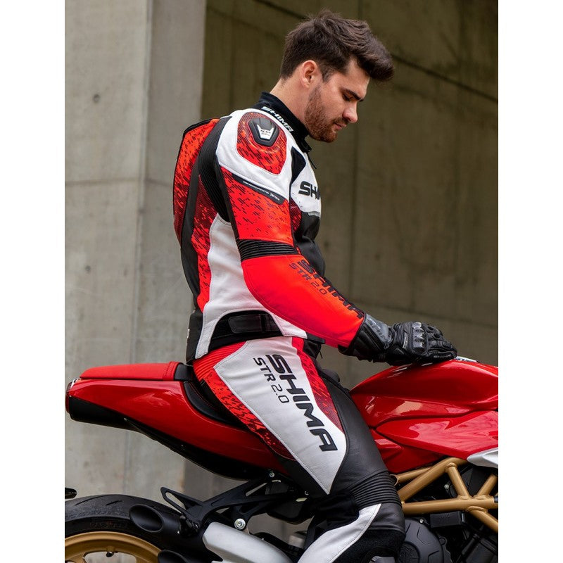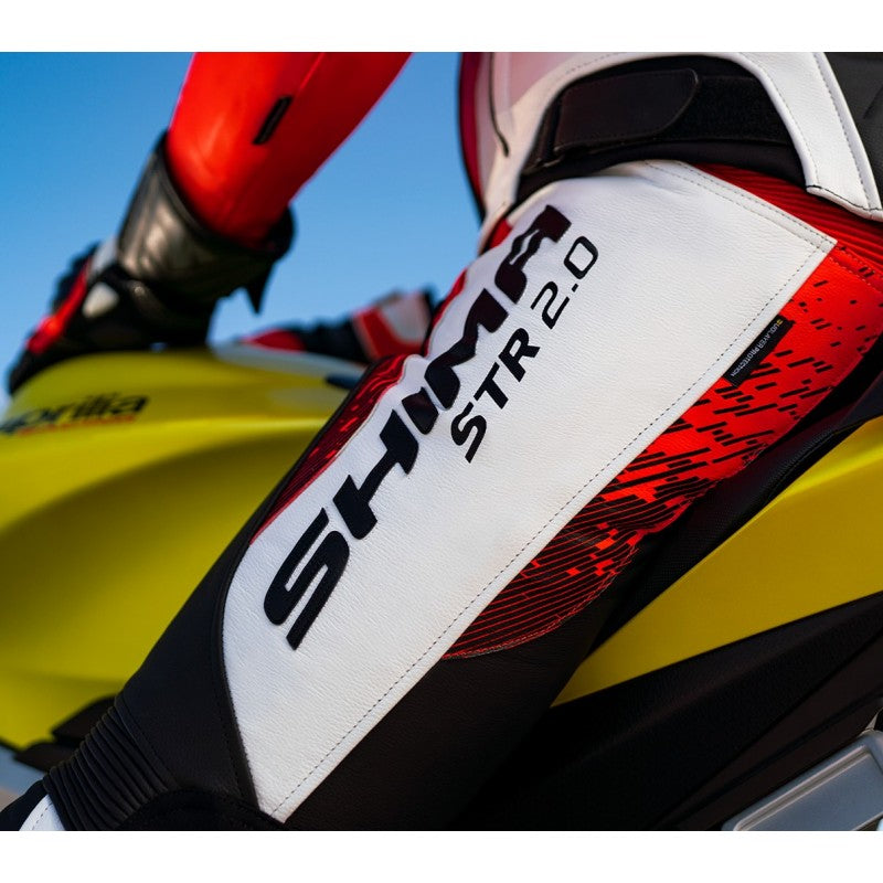 Introducing the Shima STR 2.0 Red Fluo Street Rider Pants: a perfect blend of sporty style and full leather coverage for the modern street rider. Part of the STR 2.0 series, these leather sport pants are equipped with a complete CE internal protection system, including shoulder, elbow, hip, and knee protectors, along with the SHIMA ArmorPlus back protector for the safety you deserve. The pants feature high-quality, double-layered leather in critical areas, reinforced stitching, and strategically placed perforated leather for ventilation. Designed for comfort, they include stretch leather inserts and an ergonomic 3D construction. The STR 2.0 comes complete with a set of interchangeable hip and knee protectors and knee sliders, offering a refreshed design and enhanced features for riders seeking both style and safety.