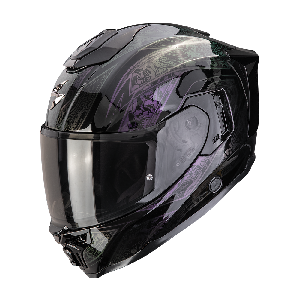 What sets the SCORPION EXO-1500 AIR FANTASY apart is its Airfit ventilation technology, which ensures a customized fit and keeps your head cool even on long rides. It also features an anti-scratch visor and a quick-change system that enhance visibility and ease of use in any situation. The chameleon-effect black finish adds a modern and distinctive touch, perfect for those who want a helmet that reflects their personality without sacrificing functionality.