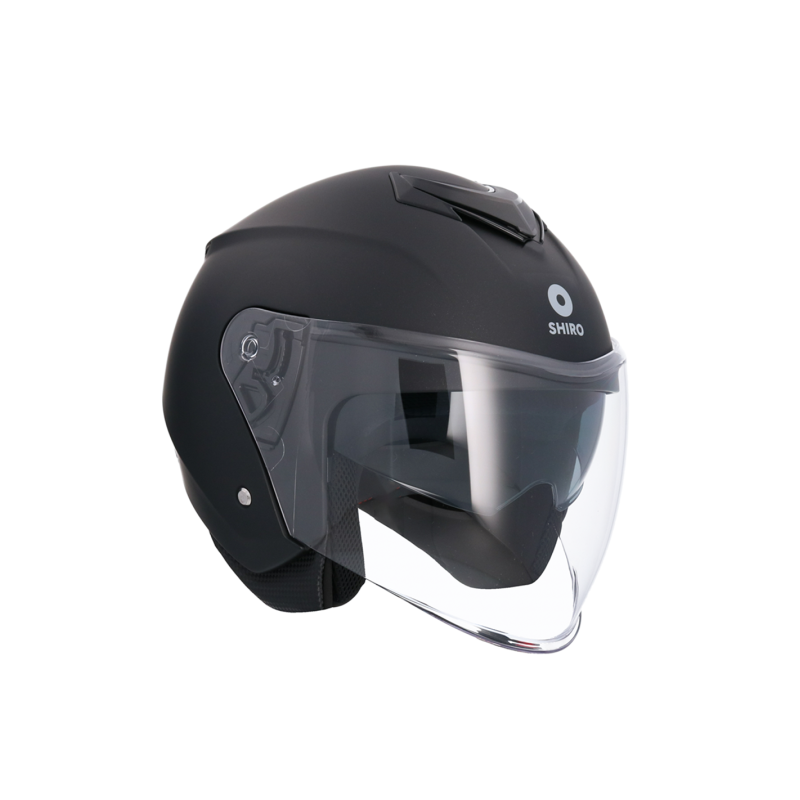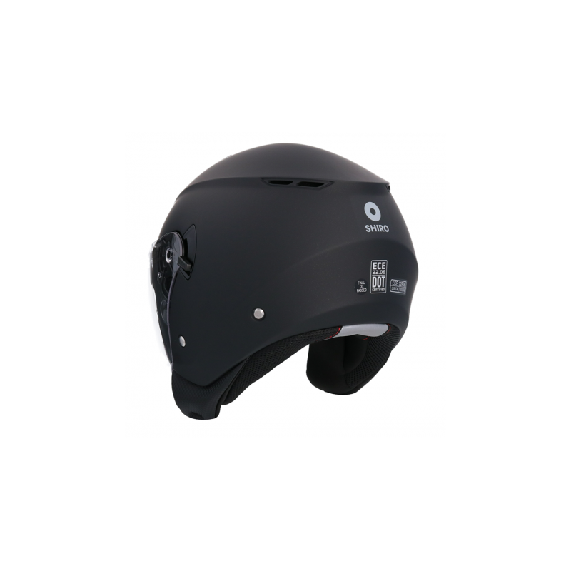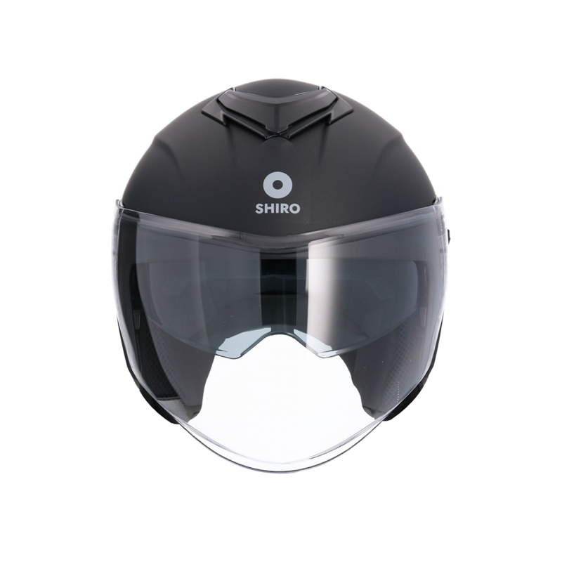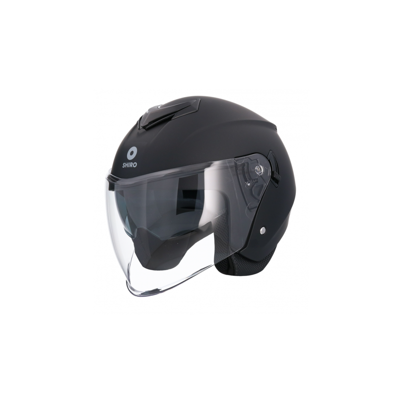 Casco Shiro OF852 Ibiza Negro con cierre rápido y gafa solar incluida. Diseño urbano, acabado brillante y homologación ECE 22-06. Unisex y perfecto para la ciudad.