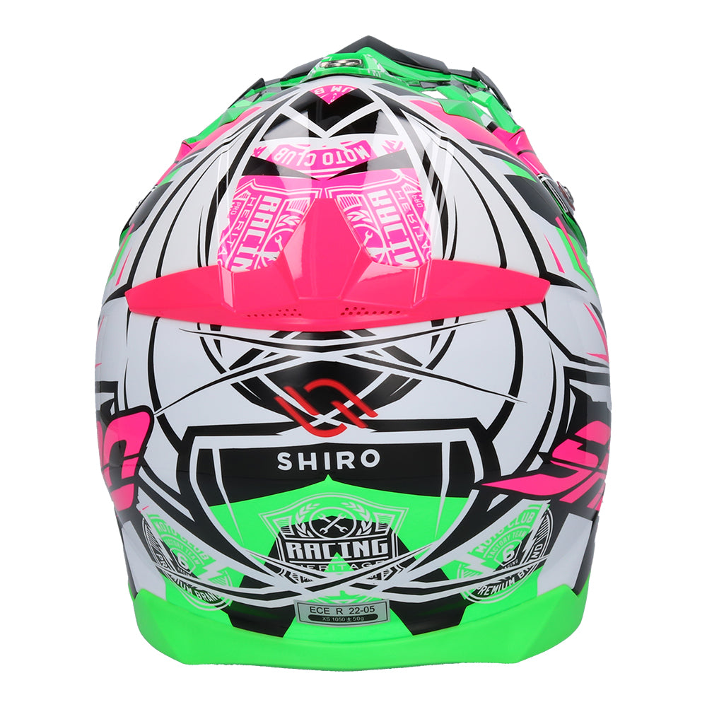 SHIRO MX-917 THUNDER 3 Casco de moto De Motocross ROSA_VERDE FLUOR