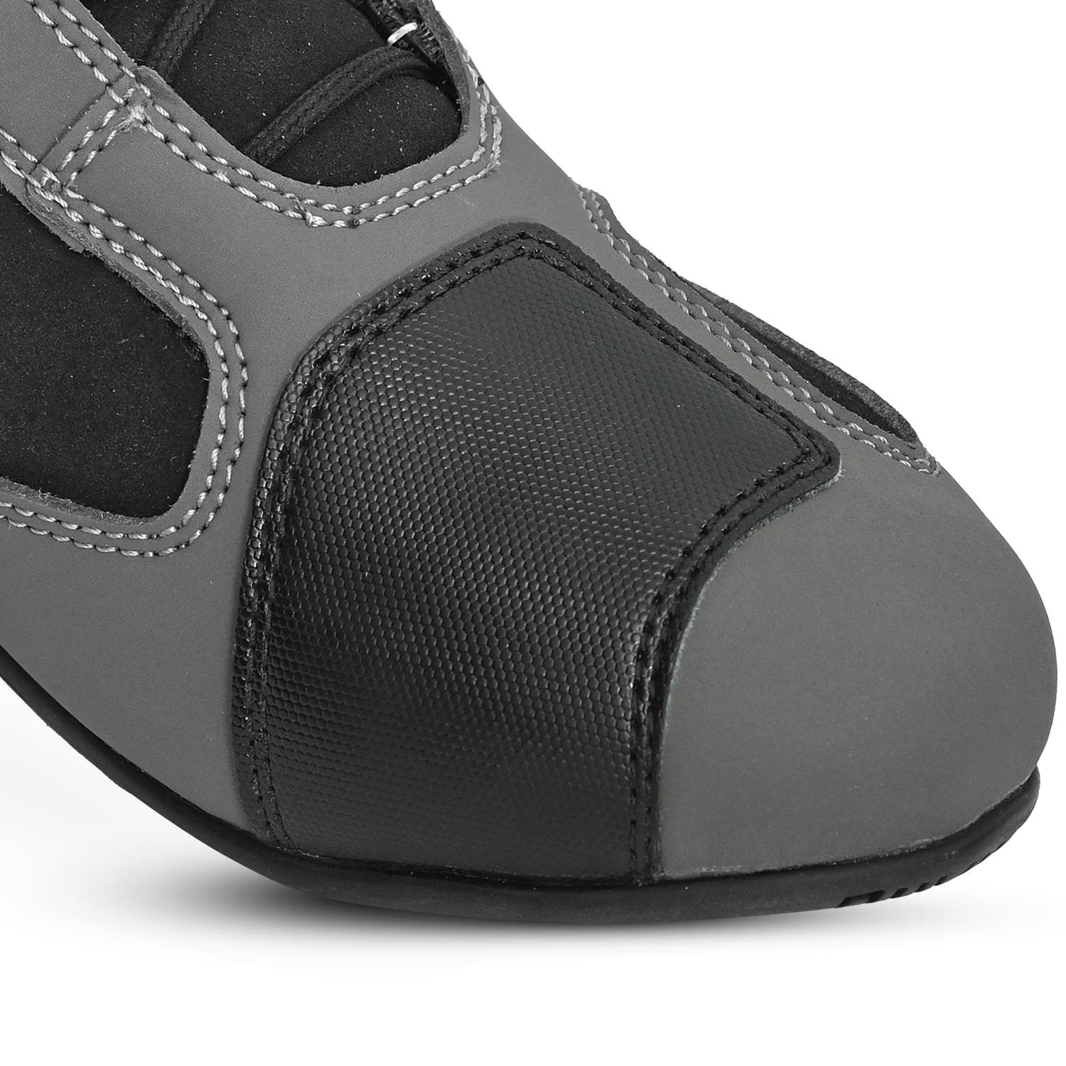 Fabricamos estas botas con materiales de alta calidad y peso ligero para una conducción cómoda. La capa exterior utiliza una combinación de cuero sintético Amara, Microfibra PU y Rexion PU, lo que las hace duraderas y con estilo. Para los días calurosos, el forro interior de Air Mesh es altamente transpirable y absorbe la humedad, manteniendo tus pies frescos y secos durante el viaje. Además, la suela plana 100% de goma ofrece un agarre inquebrantable en carreteras pavimentadas, tanto mojadas como secas. Podrás conducir con confianza sabiendo que tienes una tracción sólida.