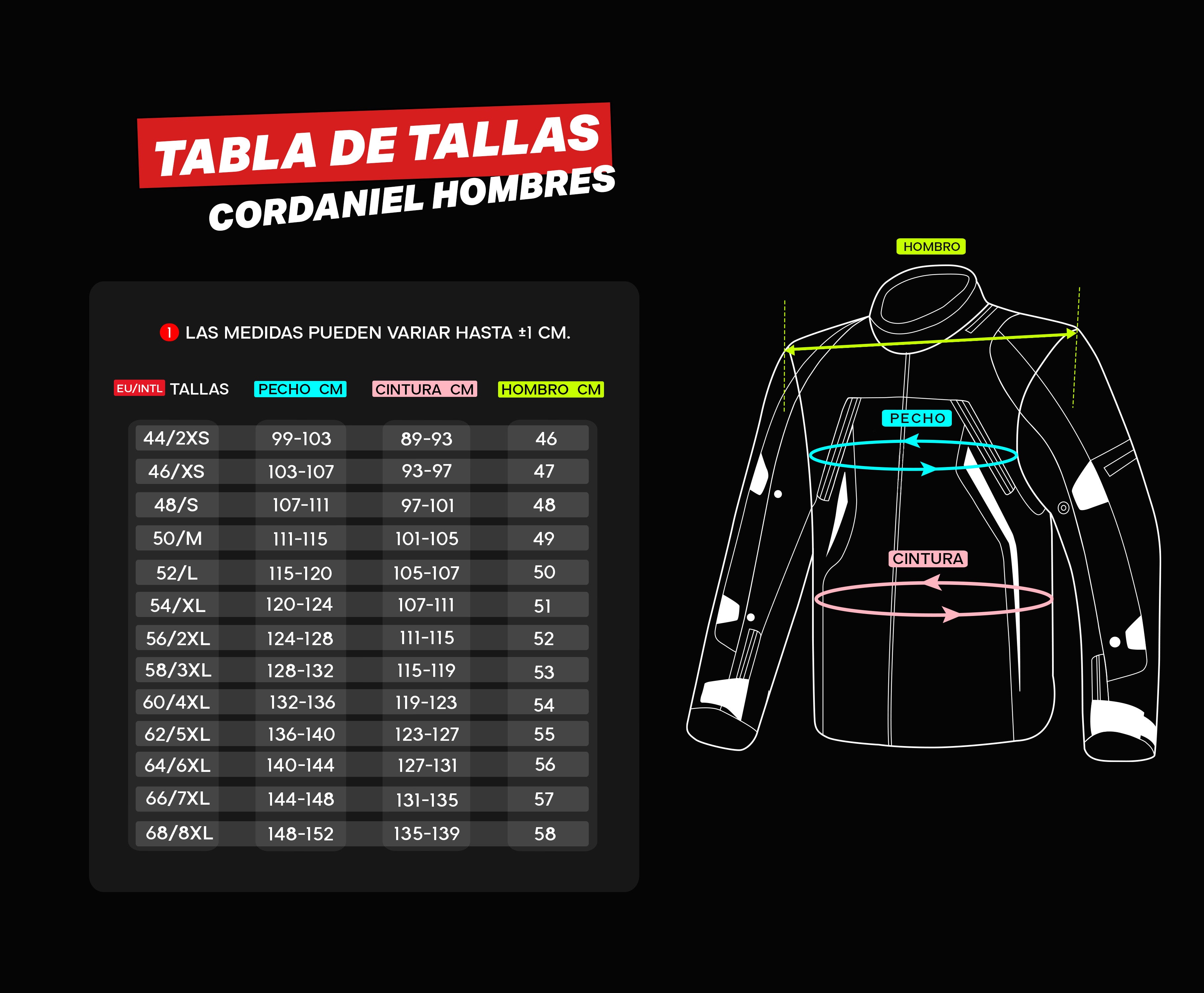 Frontale Bras Ces détails garantissent que vous êtes visible aussi bien la nuit que par temps nuageux. Spécifications du produit Protection et sécurité Protections CE amovibles sur les coudes et les épaules NIVEAU 2 Protection dorsale avec mousse haute densité. Conforme à la norme EN 17092-1:2018 Classe A. Matériaux de qualité supérieure Cordura 600D, résistant à l'abrasion. Fermetures éclair YKK pour plus de durabilité. Membrane WP fixe. Doublure thermique amovible. Praticité et entretien Lavage à la main à moins de 30°C en retirant les protections. Ne pas blanchir ni repasser. Toujours sécher à l'ombre pour préserver les matériaux.