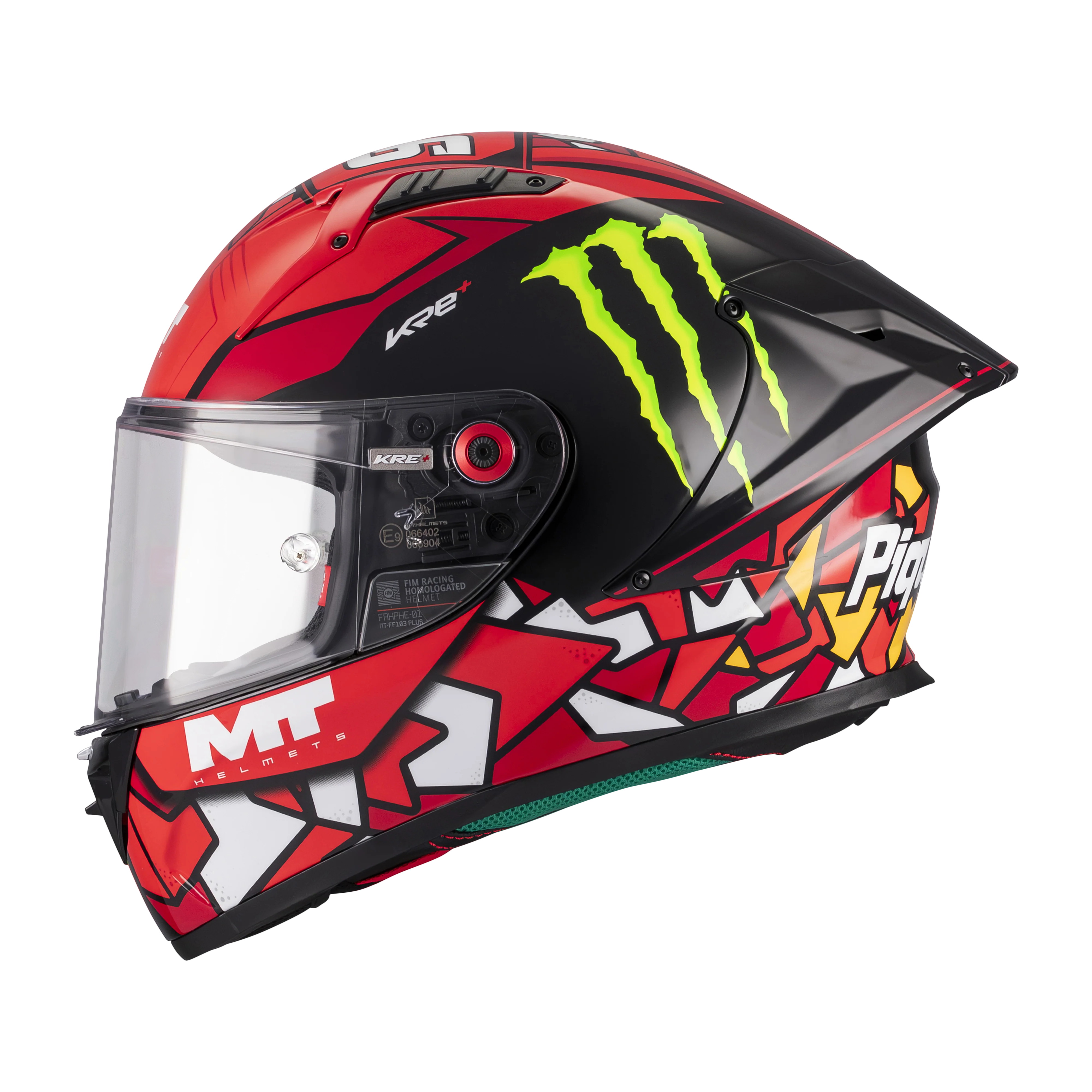 • El MT KRE+ S es un casco 100% deportivo fabricado en fibra de carbono y con homologación FIM, lo que le permite competir en cualquier competición internacional.