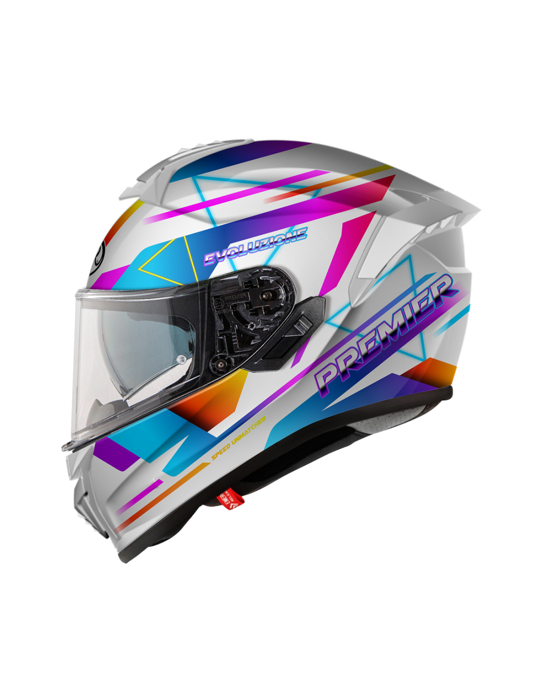La fonction première d'un casque est d'assurer la protection. Ce casque Evoluzione Multi, fabriqué à partir d'un mélange de fibres de verre et de fibres synthétiques, est généralement plus résistant qu'un casque en polycarbonate. Léger, durable et relativement flexible, il offre une excellente absorption des chocs. La jugulaire est un élément essentiel de la sécurité du casque en cas d'accident et c'est aussi la partie la plus fréquemment manipulée lorsqu'on met et qu'on enlève le casque. L'Evoluzione est équipé d'une boucle micrométrique. Cette boucle sûre et facile à utiliser permet des réglages simples et est la seule qui puisse être ajustée avec des gants. Bien entendu, tous nos casques sont homologués pour la route en Europe, ce casque étant conforme à la norme ECE 22.05. Cette norme de sécurité est également valable dans de nombreux autres pays, comme l'Australie et le Canada.