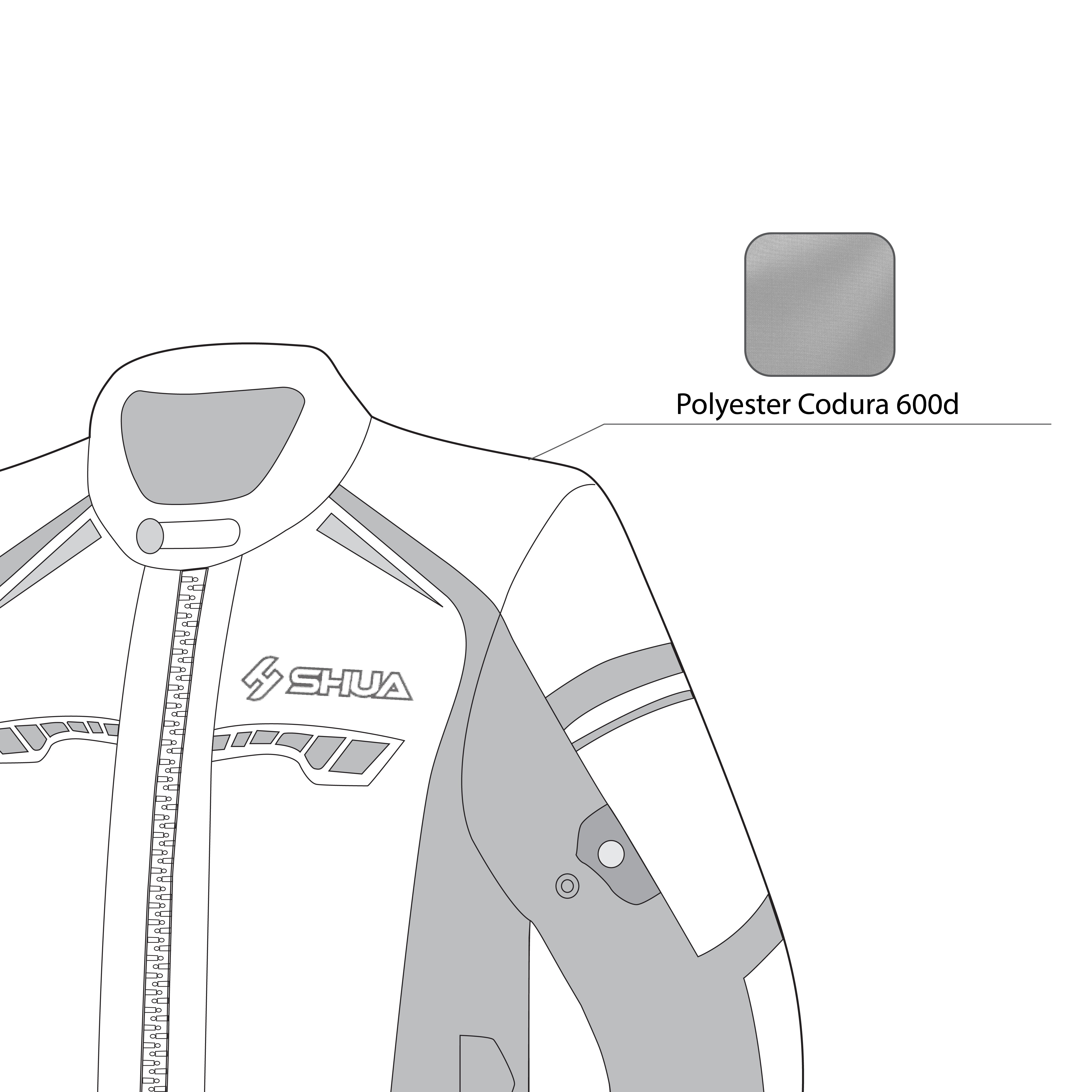 La giacca Shua Immortal è realizzata con materiali resistenti per resistere alle sollecitazioni della guida. Il tessuto Cordura 600D e 1680D è resistente all'abrasione e idrorepellente , offrendo una protezione affidabile in diverse condizioni atmosferiche. È inoltre dotata di protezioni rimovibili certificate CE su gomiti, spalle e schiena per una sicurezza superiore su strada.