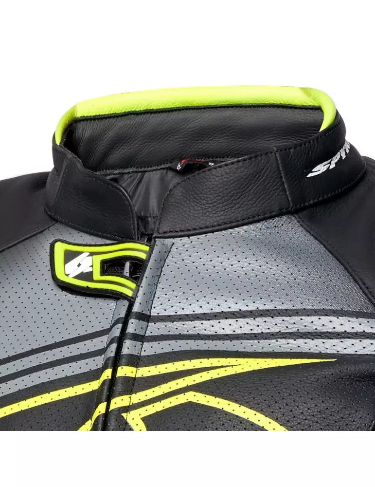 SPYKE - GIACCA IN PELLE ARAGON EVO NERO/GIALLO FLUO