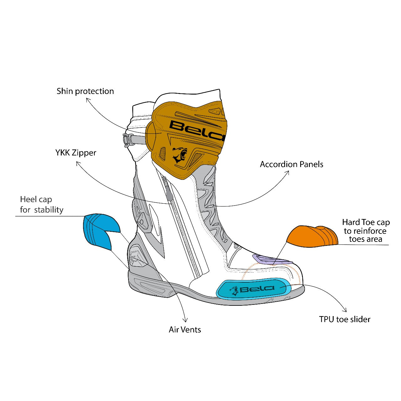 Imagina dominar tu motocicleta en carretera abierta o participando en una competencia: estas botas de corte completo ofrecen defensa total, sensación precisa y excelente gestión del aire. BELA produce constantemente calzado de grado profesional, altamente visible, diseñado para velocidad y resistencia. Este modelo está claramente destinado al Racing en Pista, Touring de Resistencia y Conducción Deportiva Agresiva.