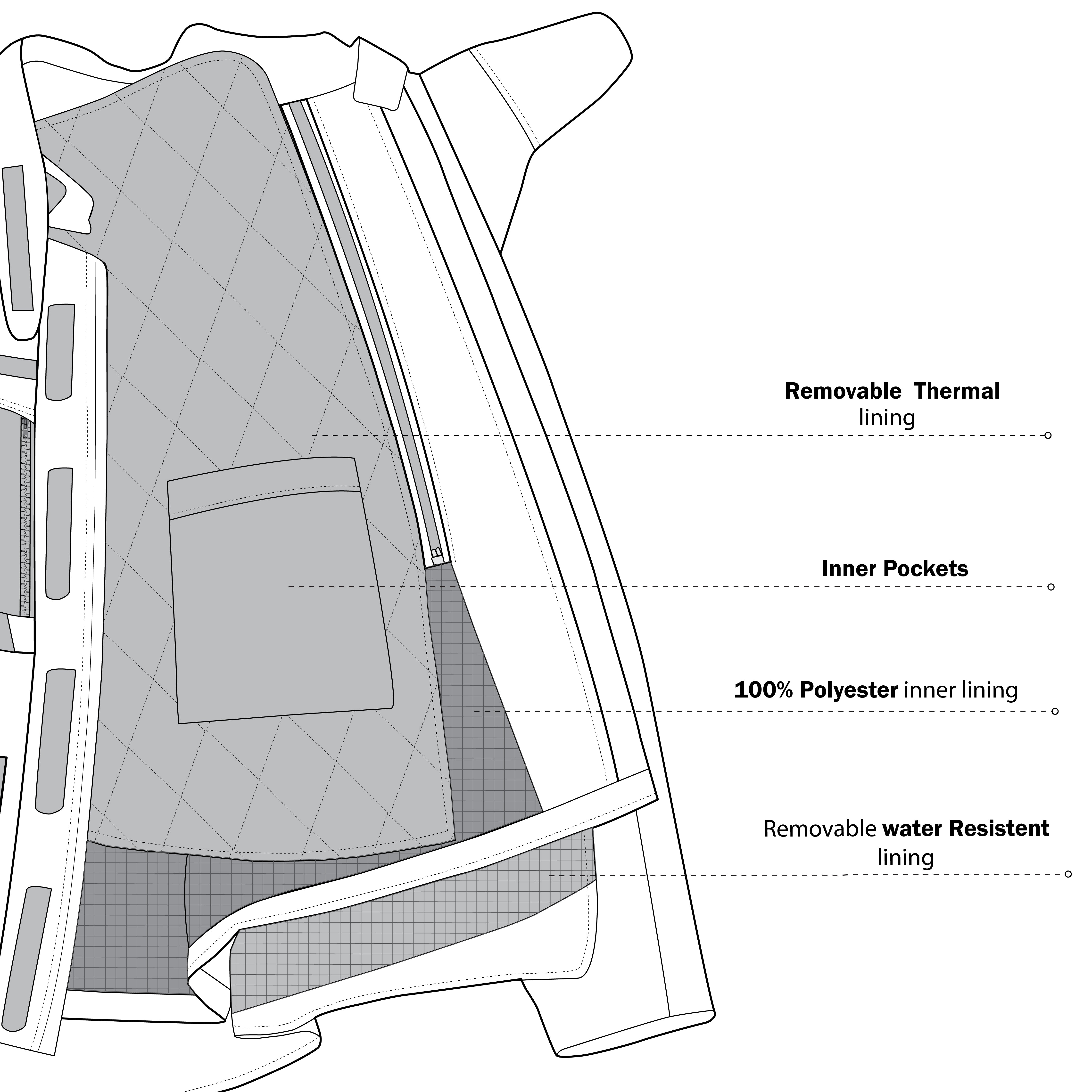 Membrana impermeable y transpirable extraíble: mantiene tu cuerpo seco en condiciones de lluvia.