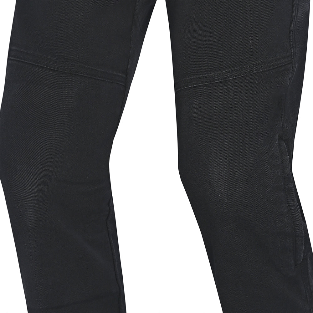Su diseño clásico de cinco bolsillos —dos delanteros, dos traseros y uno pequeño tipo monedero— aporta practicidad para el día a día con un look motero auténtico. Las cremalleras YKK y las costuras reforzadas aseguran durabilidad y rendimiento en cada trayecto.