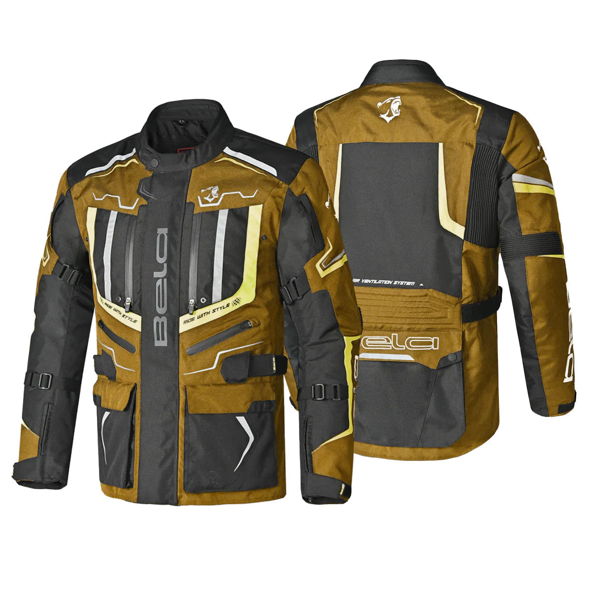 BELA WATSON  HOMBRE MOTO CHAQUETA TEXTILE NEGRO MARRON AMARILLO