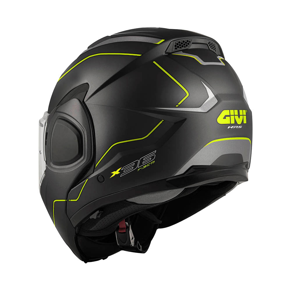El casco GIVI Flipback Fiber X36Plus en acabado negro mate con detalles en plata y amarillo T54 es la elección perfecta para quienes buscan seguridad y estilo en cada viaje. Fabricado con materiales de alta calidad, este casco combina una estructura robusta y ligera que ofrece una protección óptima sin sacrificar la comodidad. Su diseño flipback permite levantar la mentonera fácilmente, brindando versatilidad y practicidad en cualquier situación.