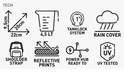 La bolsa de depósito Kappa DR04 es una bolsa con capacidad de 4,5 litros diseñada con el sistema patentado de liberación rápida TANKLOCK, que ofrece una fácil colocación y desmontaje. Cuenta con un diseño exclusivo que permite desenroscar y girar el sistema, lo que la hace compatible con motocicletas que tienen una brida girada 90°. Esta bolsa está diseñada específicamente para varios modelos, entre ellos Honda CRF1000L y CRF1100L Africa Twin, Kawasaki Versys 650 y Triumph Tiger 1200 Rally Explorer. Características: Tejido exterior duradero de poliéster recubierto de PU 1680D Forro interior fabricado con tejido de poliéster 210D Reforzado con polipropileno y EVA para mayor rigidez y estabilidad Tejidos probados contra rayos ultravioleta para un rendimiento duradero Correa de seguridad para una sujeción segura al volante Incluye una correa para el hombro para facilitar su transporte Funda para lluvia para protección contra la intemperie Puerto para cables para cargar dispositivos electrónicos Sistema de almacenamiento superior elástico con presilla de tejido reflectante Estampado de camuflaje tono sobre tono en los laterales Detalles reflectantes 3M para una mayor visibilidad Cremalleras certificadas por SAB para un cierre seguro