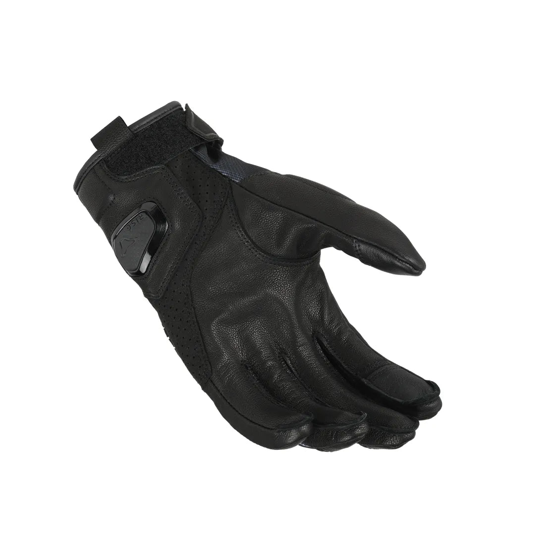 Un guante de moto con puño corto diseñado para pilotos en condiciones de calor. El Haros 2.0 consta de dos capas de piel de cabra en la palma y tejido elastano en el dorso de la mano. El tejido de elastano es elástico y transpirable, lo que lo hace ideal para condiciones de conducción calurosas. Los protectores de TPR similares al caucho se fijan a la palma, los nudillos y los dedos para absorber y distribuir el impacto en caso de caída. El tejido termoconductor está unido a las puntas de los dedos índices. Gracias a esto, puede operar pantallas táctiles sin tener que quitarse los guantes.