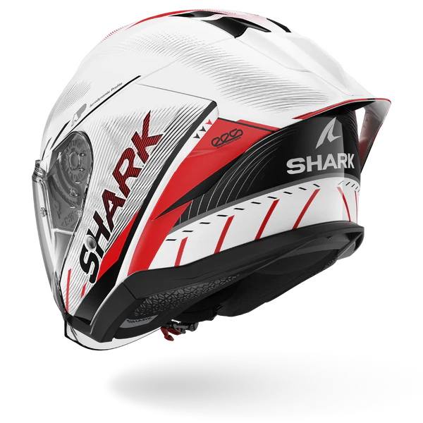 Su spoiler trasero característico, poco habitual en esta categoría, ofrece un control real del flujo de aire y líneas racing limpias que evocan los cascos vistos en la parrilla de salida.