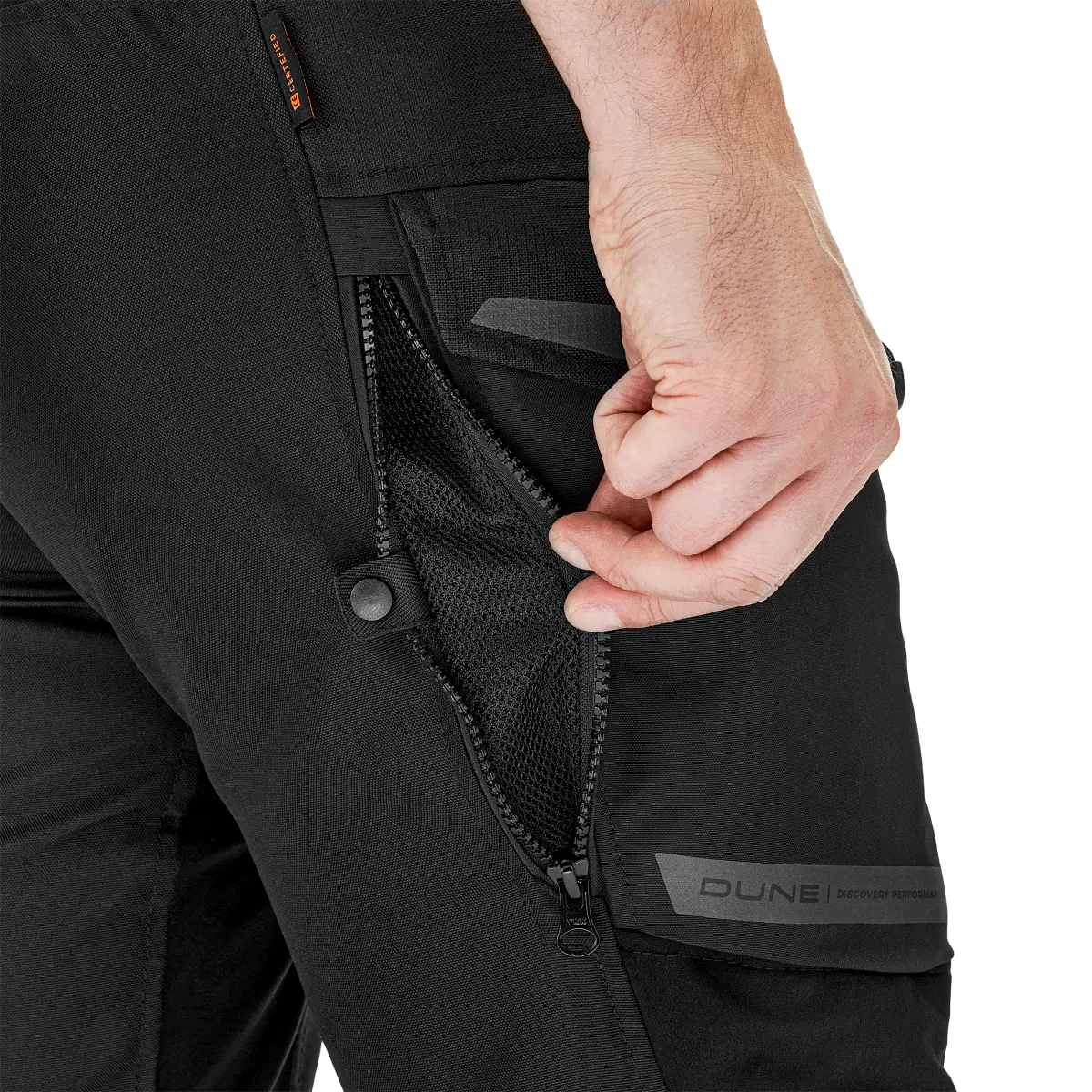 Ideales para todo tipo de condiciones meteorológicas, los pantalones SHIMA DUNE cuentan con una construcción de doble capa: una capa base y una membrana impermeable desmontable NextDry™, que permite una rápida adaptación a los cambios del clima. Además, sus paneles de ventilación verticales en los muslos, con cierre de broches, aseguran una excelente circulación de aire y comodidad térmica incluso en los días más calurosos.