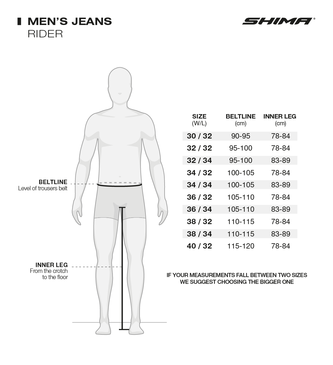 Os jeans Rider para motociclistas têm tudo que você precisa para andar sobre duas rodas com segurança e conforto. São confeccionados em jeans reforçado com tecnologia SafeRide™. Como resultado, garantem não só uma proteção sólida, mas também um conforto incrível. O piloto está equipado com protetores de joelho respiráveis AirForce™ FLEXX nível 2. Os bolsos para os protetores com ajuste de altura em 3 posições estão localizados na parte externa e fecham com zíper. Assim você pode transformar rapidamente seus jeans de motociclista em calças do dia a dia. Você também pode equipá-los com um protetor de quadril (vendido separadamente). O tecido elástico e a cintura alta garantirão que você se sinta confortável ao pedalar. A calça jeans possui bolsos frontais e traseiros e porta-chaves. Graças ao zíper de conexão curto, o Rider pode ser facilmente combinado com sua jaqueta de motocicleta SHIMA favorita sem a necessidade de adaptadores adicionais.